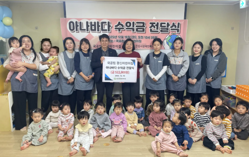 사회복지법인 한길복지재단(이사장 한창섭)에서 수탁하고 있는 안성시장애인복지관(관장 김덕수)은 지난 12월 16일(화), 안성 국공립광신어린이집(원장 이한욱)로부터 제3회 아나바다 나눔장터를 통해 마련된 수익금을 전달받았다고 밝혔다.