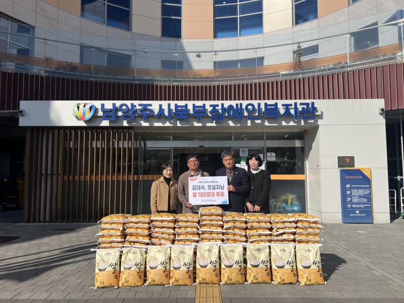남양주시(시장 주광덕)는 지난 12일 남양주시북부장애인복지관(관장 김남국, 이하 복지관)에서 김대식·정설자 부부 후원자로부터 10㎏ 쌀 100포를 후원받았다고 밝혔다.