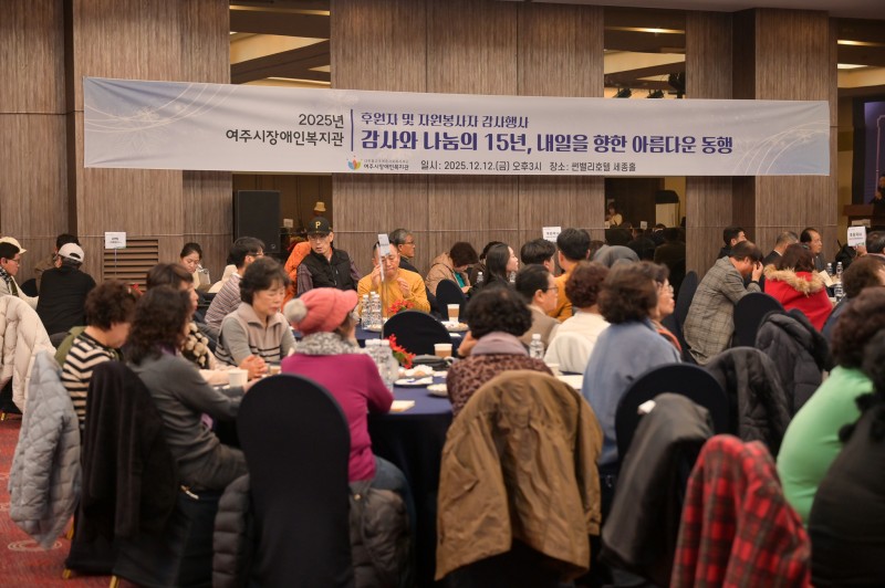 여주시 장애인복지관은 지난 12일, 여주 썬밸리호텔에서 복지관 후원자 및 자원봉사자 150여 명이 참석한 가운데 ‘2025 후원자 및 자원봉사자 감사행사’를 성황리에 개최했다.