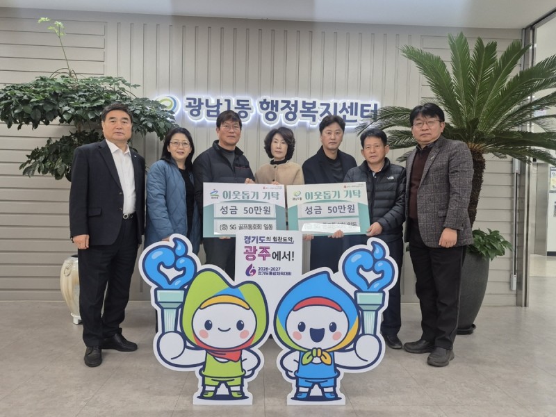 SG골프 동호회 일동은 지난 17일 광주시 광남1동 행정복지센터를 방문해 한파로 어려움을 겪는 이웃을 돕기 위해 광남1동과 광남2동에 각각 성금 50만 원씩을 기탁했다.