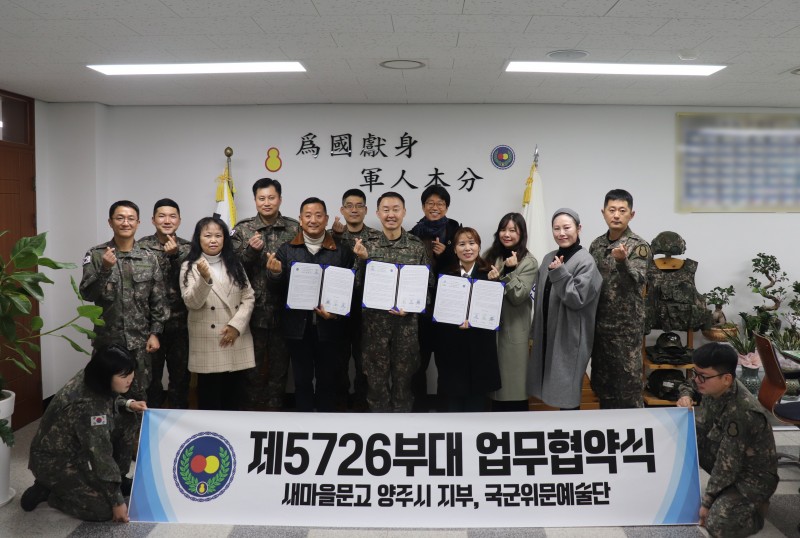 새마을문고 양주시지부(회장 오경옥)는 지난 12월 19일(금), 육군 제5726부대에서 군 장병들의 독서문화 확산과 인문학적 소양 증진을 위한 업무협약(MOU)을 체결했다고 밝혔다.