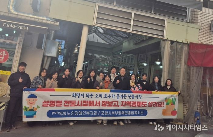 (케이시사타임즈) 포항시 노인장애인복지과는 지난 6일 북부장애인종합복지관 직원들과 함께 장량성도시장에서 ‘설맞이 전통시장 장보기 행사’를 진행했다.