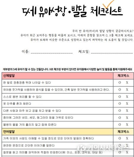 '아이성장 집중 관찰기간'은 학기 초인 3월과 9월에 운영되며, 교사가 유아 성장‧발달 체크리스트와 영유아 건강검진(K-DST) 결과 등을 활용해 유아의 발달 상황을 종합적으로 파악하는 과정으로 진행된다.