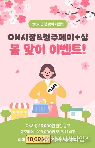 (케이시사타임즈) 청주시는 3월 9일부터 27일까지 청주사랑상품권(청주페이) 앱 내 전통시장 장보기 서비스인 ‘온시장’과 지역 소상공인 온라인몰 ‘청주페이플러스샵’에서 봄맞이 할인쿠폰 제공 이벤트를 진행한다고 7일 밝혔다.