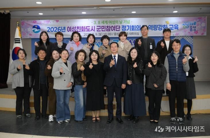(케이시사타임즈) 음성군은 9일 군청 대회의실에서 3월 8일 ‘세계 여성의 날’을 기념해 여성친화도시 군민참여단 정기회의 및 역량 강화 교육을 개최했다고 밝혔다.