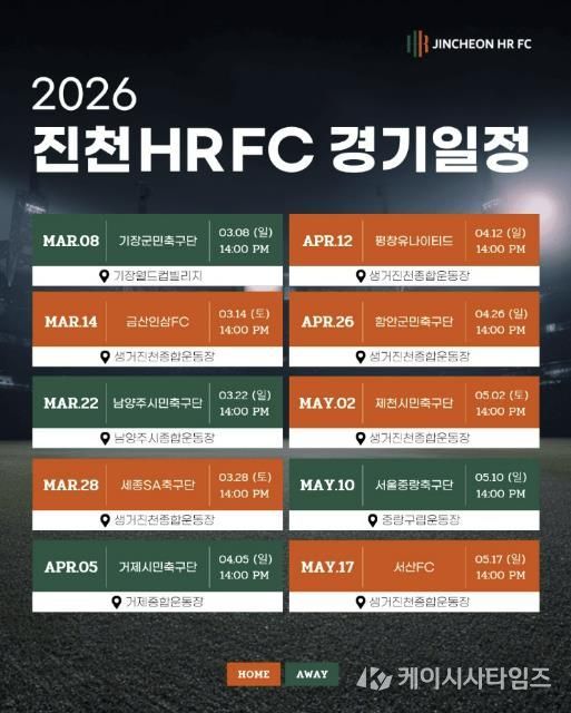 구단은 이번 2026 시즌 K4리그에서 총 24경기를 소화할 예정이며, 이 중 절반인 12경기가 진천군 생거진천 종합운동장에서 펼쳐진다.