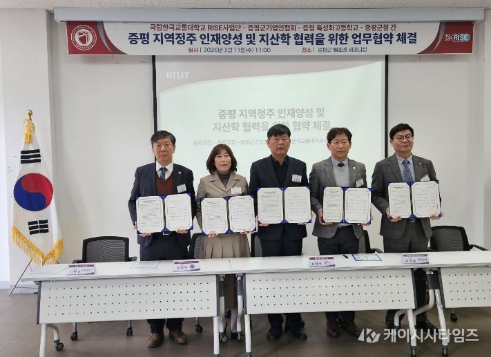 군은 11일 벨포레리조트에서 증평공업고등학교, 충북비즈니스고등학교, 증평군기업인협회, 국립한국교통대학교 RISE사업단과 함께 지역 취업 및 진학 확대를 위한 지·산·학 협력 협약을 체결했다.