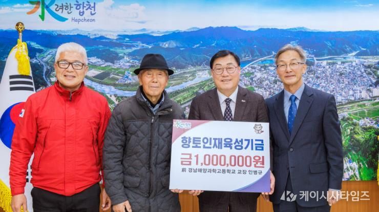 (케이시사타임즈) 前 경남해양과학고등학교 교장 안병규는 10일 (재)합천군인재육성재단을 방문하여 향토인재육성기금 100만원을 기탁했다.