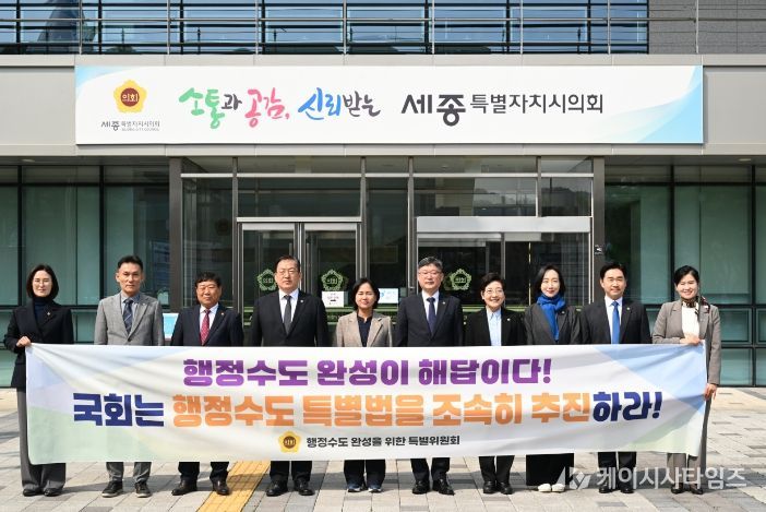 행수특위 위원들은 “행정수도 완성이 해답이다”, “국회는 행정수도 특별법을 조속히 제정하라”는 현수막을 들고 강력한 의지를 전달했다.