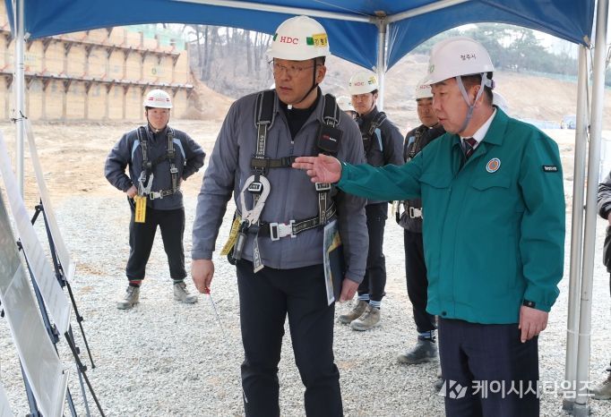 (케이시사타임즈) 이범석 청주시장은 11일 흥덕구 가경동 일원에서 진행 중인 홍골2지구 공동주택 건설공사 현장과 도로개설사업 현장을 찾아 공사 추진 상황을 살피고, 해빙기를 맞아 안전관리 실태를 점검했다.