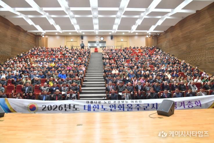 (케이시사타임즈) 대한노인회 울주군지회가 12일 울주군청 알프스홀에서 이순걸 군수와 울주군의회 최길영 의장 및 군의원, 지회 임원 및 경로당 회장 등 430여명이 참석한 가운데 2026년도 정기총회를 개최했다.