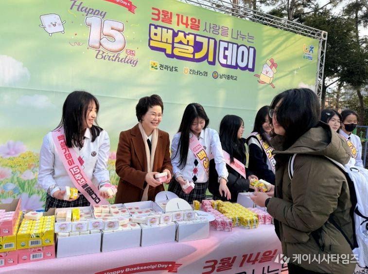 (케이시사타임즈) 전남도는 12일 백설기데이(3월 14일)를 앞두고 무안 남악중학교에서 농협 전남지역본부와 함께 학생, 교직원 700명을 대상으로 백설기데이 쌀 소비촉진 행사를 추진했다.