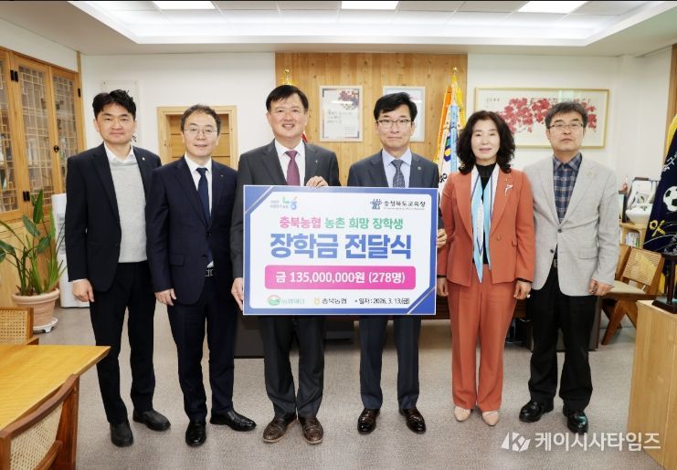 (케이시사타임즈) 충청북도교육청은 13일, 충북농협(본부장 이용선)이 지원한 농촌지역 학생 대상 희망 장학금 전달식을 개최했다.