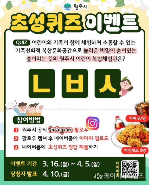 참여 방법은 원주시 공식 인스타그램을 팔로우한 뒤, 이벤트 게시물에 제시된 초성 퀴즈 정답을 맞히면 된다.