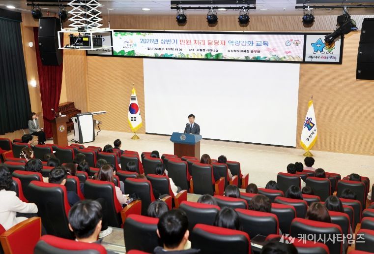 (케이시사타임즈) 충청북도교육청은 17일, 본청 사랑관 1층 세미나실에서 본청 직원과 직속기관, 교육지원청 및 청주지역 고등(특수)학교 민원 담당자를 대상으로 민원인 정보보호 의식 제고와 민원 응대 역량 강화를 위한 교육을 실시했다.
