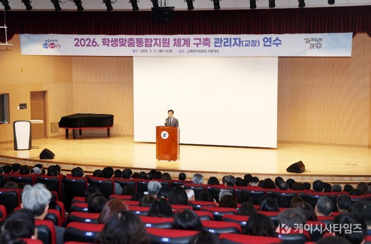 이날 연수에서는 이길재 충북대학교 교육학과 교수가 '학생맞춤통합지원 체계 구축의 이해'를 주제로 강의를 진행하며 학생 중심 지원 체계의 필요성과 학교 현장에서의 운영 방향, 학교장의 역할 등을 설명했다.
