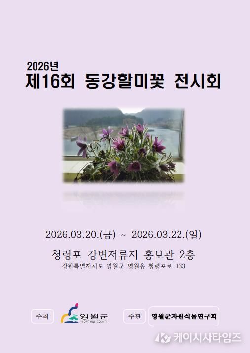 (케이시사타임즈) 2026년 3월 20일부터 22일까지 영월군 청령포 강변저류지 홍보관에서 제16회 동강할미꽃 전시회를 개최한다.