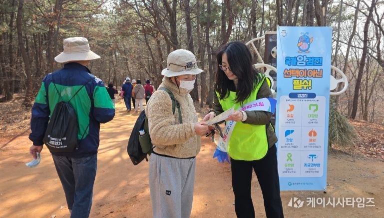 참가자들은 황방산(중구 소재) 둘레길을 맨발로 걸으며 건강의 의미를 되새기고, 암 예방을 위한 생활 습관 실천을 다짐하는 시간을 가졌다.