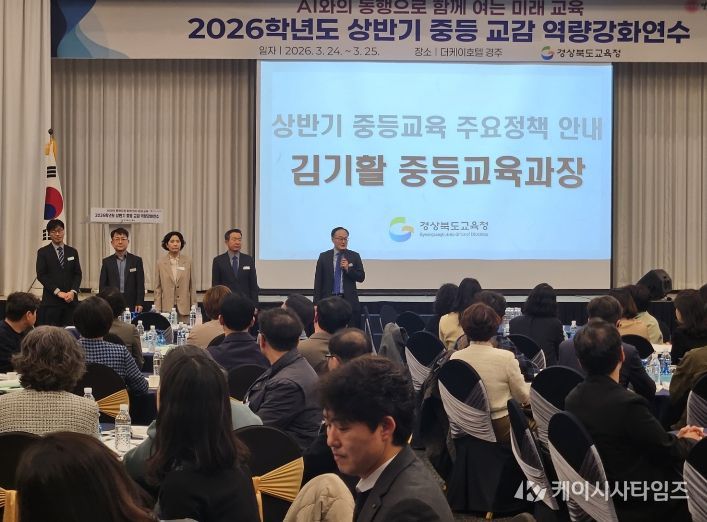 (케이시사타임즈) 경북교육청은 24일부터 25일까지 이틀간 경주시에 있는 더케이호텔경주에서 도내 중등 교감 350여 명을 대상으로 ‘2026학년도 상반기 중등 교감 역량 강화 연수’를 개최했다고 밝혔다.