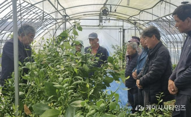 (케이시사타임즈) 옥천군농업기술센터는 아열대작물 연구회 회원 10여 명을 대상으로 감귤류 및 만감류 재배기술과 전정(가지치기) 관련 현장 교육을 실시했다고 밝혔다.