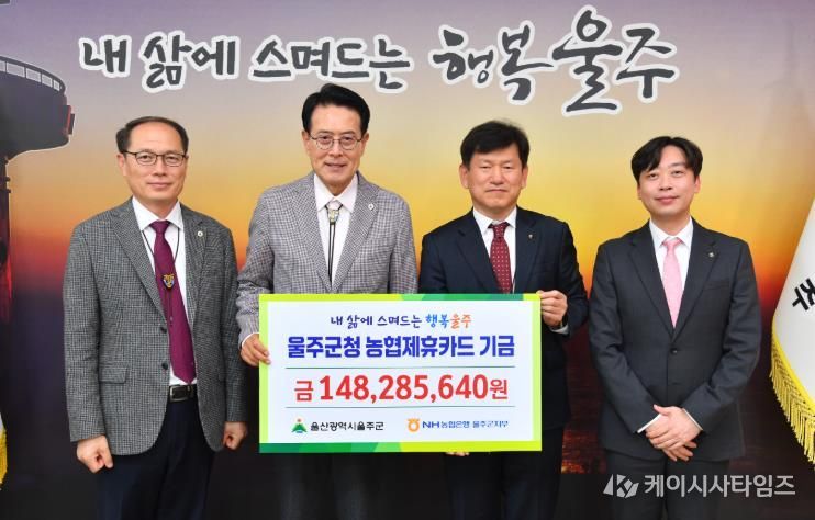 (케이시사타임즈) NH농협은행 울주군지부가 25일 울주군에 제휴카드 적립기금 1억4천828만원을 전달했다.