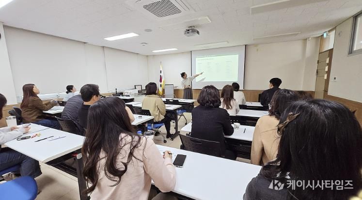 이번 연수는 김현지 임상심리사가 각급 학교 업무담당자 26명을 대상으로 학생정서·행동특성검사 운영 전반과 매뉴얼 및 시스템 사용 방법 등을 설명하고, 실무에 필요한 마음건강 관련 정보도 함께 제공했다.