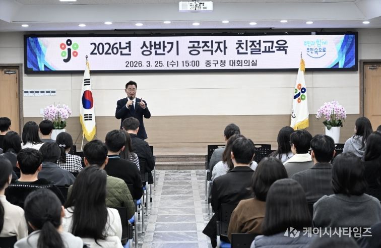 (케이시사타임즈) 대전 중구는 25일 중구청 대회의실에서 공직자의 소통 능력 및 민원응대 역량 강화를 위해 직원 150여 명을 대상으로 ‘2026년 상반기 친절교육’을 실시했다고 밝혔다.