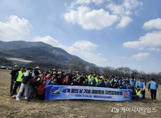 (케이시사타임즈) 예산군은 지난 25일 예당저수지 일원에서 관내 사회·환경단체와 한국농어촌공사 예산지사, 예당내수면어업계, 공무원 등 110여명이 참여한 가운데 ‘세계 물의 날’을 기념한 자연정화활동을 펼쳤다.