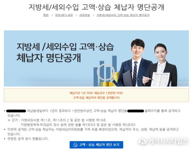 명단공개 대상은 납부 능력이 있음에도 납부하지 않거나 납부 약속을 이행하지 않은 납세기피자를 중심으로 선정했으며 무재산·거주불명 상태라도 부동산이나 자동차 등 압류 가능 재산이 있는 경우도 포함된다.