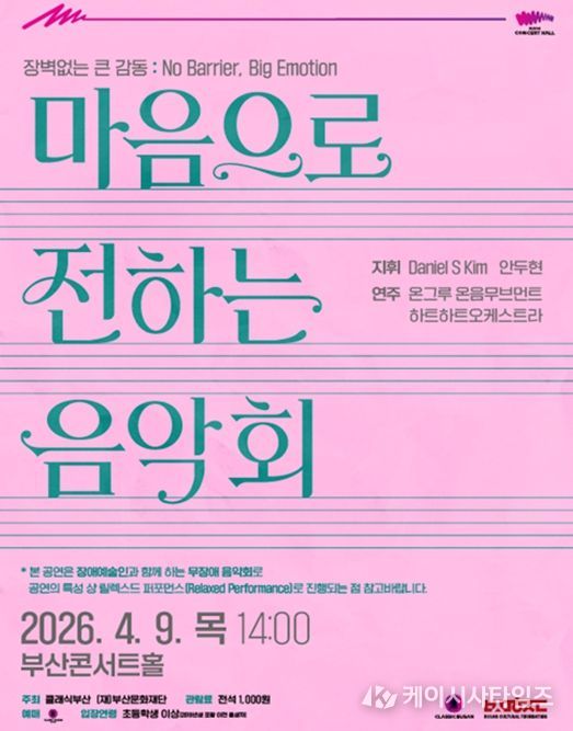 (케이시사타임즈) 클래식부산과 (재)부산문화재단은 장애 예술인과 함께하는 무장애(Barrier-Free)음악회를 부산콘서트홀에서 개최한다.