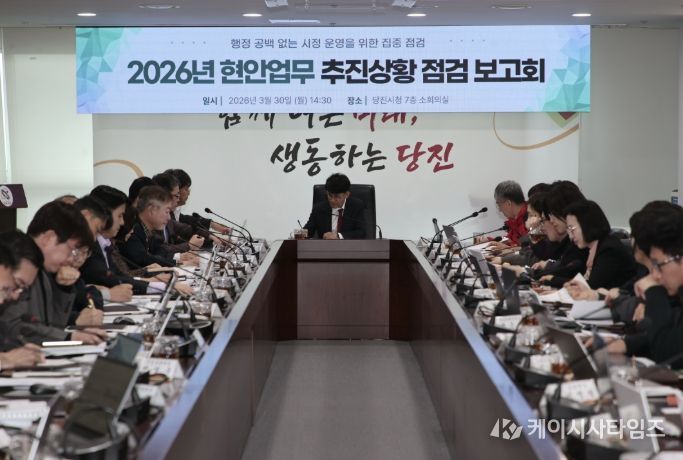 (케이시사타임즈) 당진시는 지난 30일 당진시청 7층 소회의실에서 당진시장 권한대행 황침현 부시장 주재로 국·소장 및 각 부서장들이 참석한 가운데 2026년 현안업무 추진상황 점검 보고회를 개최했다고 31일 밝혔다.