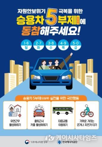 5부제는 평일 24시간 적용되며, 장애인 이용 자동차, 임산부·유아(미취학) 동승 차량, 전기차, 수소차 등은 종전과 같이 제외된다.
