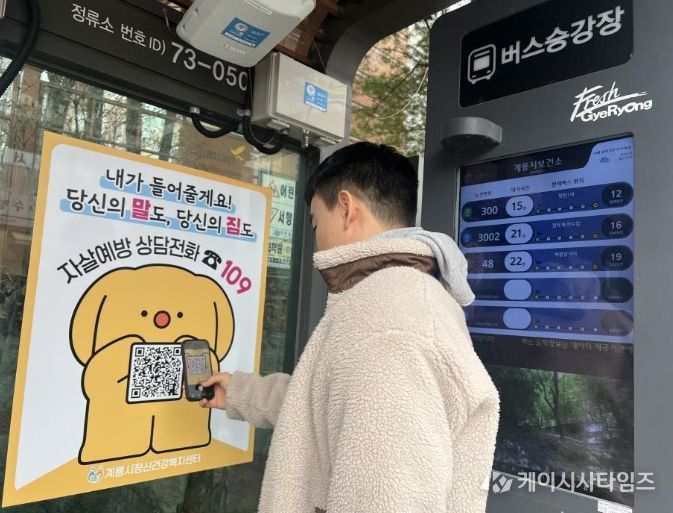 (케이시사타임즈) 충남 계룡시는 일상생활 속에서 손쉽게 마음 상태를 확인할 수 있도록 공원 26곳과 버스정류장 64곳에 QR코드 우울검사 포스터를 부착했다고 밝혔다.