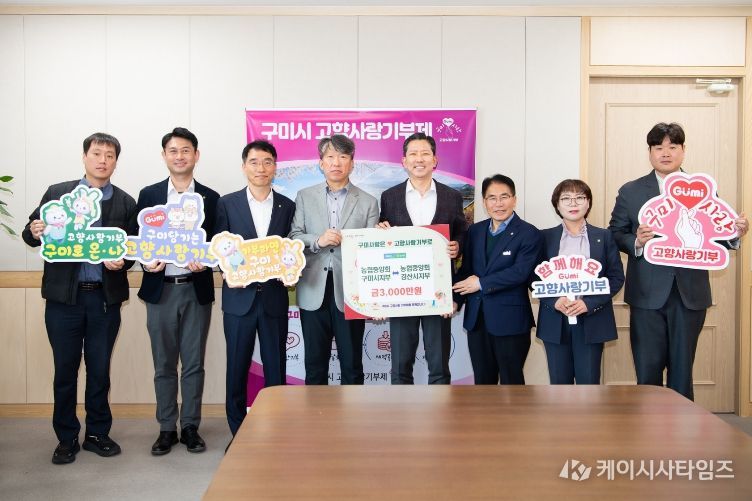 (케이시사타임즈) 구미시는 4월 2일 농협중앙회 구미시지부(지부장 이승철)와 경산시지부(지부장 이재근)가 지역 상생 발전을 위한 고향사랑기부금 3,000만원을 상호기부했다고 밝혔다.