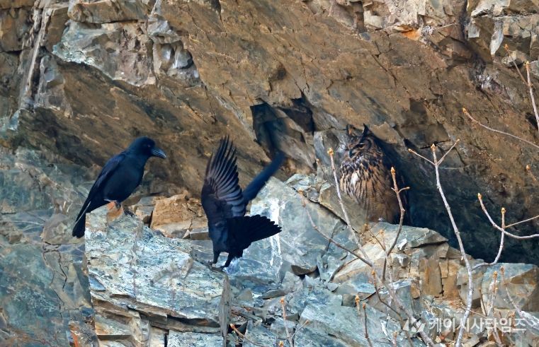 (케이시사타임즈) 울산시 울주군 절개지 암벽에서 천연기념물이자 멸종위기 야생생물 Ⅱ급인 수리부엉이가 새끼 4마리를 성공적으로 길러내는 장면이 포착됐다.