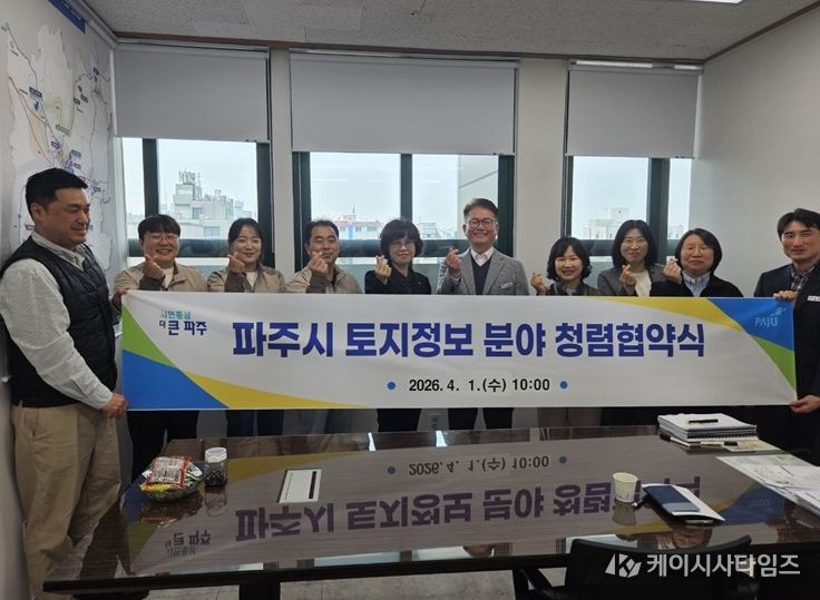 (케이시사타임즈) 파주시는 지난 1일 지적측량 수행기관인 한국국토정보공사 파주지사와 ‘토지정보 분야 청렴협의체’를 구성하는 내용으로 협약을 체결했다.