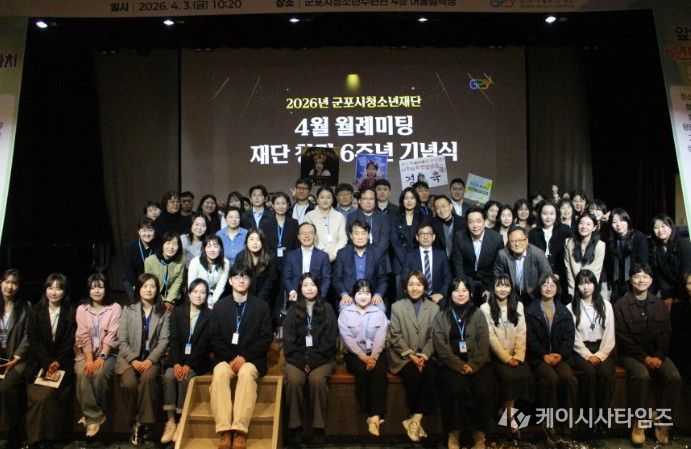 (케이시사타임즈) 군포시청소년재단은 4월 3일 군포시청소년수련관 청소년어울림극장에서 4월 월례미팅을 열고, 창립 6주년을 맞아 미래도약 의지를 다지는 자리를 마련했다. 이날 행사에는 군포시청소년재단 임직원, 화용선차예문화연구소 등 80여 명이 참석했다.