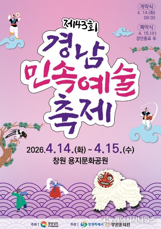 (케이시사타임즈) 창원특례시는 오는 4월 14일부터 15일까지 이틀간 창원 용지문화공원에서 “제43회 경남민속예술축제”를 개최한다고 밝혔다.