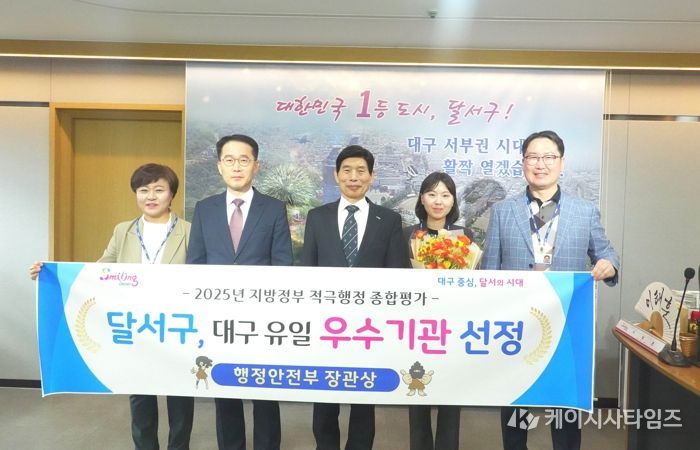 (케이시사타임즈) 대구 달서구가 행정안전부 주관‘2025년 지방정부 적극행정 종합평가’에서 대구 자치구 중 유일하게 우수기관으로 선정되고, 장관 표창까지 수상하는 성과를 거뒀다.