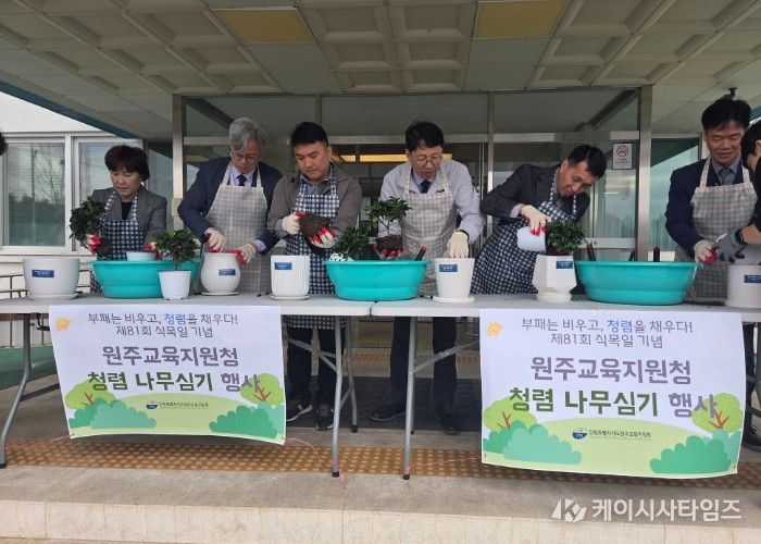 (케이시사타임즈) 강원특별자치도원주교육지원청은 4월 6일 오전 9시 30분, 원주교육지원청 청사 현관 앞에서 제81회 식목일 기념 ‘청렴 나무심기’ 행사를 실시했다.