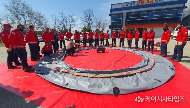 이번 훈련은 창녕군 산불대응센터에서 진행됐으며, 산림재난대응단을 중심으로 산불 상황을 가정해 약 3만 리터 규모의 이동식 저수조를 신속하게 설치하고 운영하는 데 중점을 두었다.