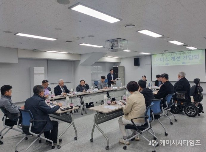 (케이시사타임즈) 용인도시공사 교통약자이동지원센터는 용인 미르스타디움 회의실에서 교통약자이동지원 서비스 개선 협의체 간담회를 개최했다고 6일 밝혔다. 이번 협의체 간담회는 교통약자 이동권의 실질적 보장을 위해 서비스 이용자 및 관내 관련 단체의 현장 의견을 폭넓게 수렴하고, 이를 바탕으로 실효성 있는 서비스 개선 방안을 모색하고자 마련됐다.