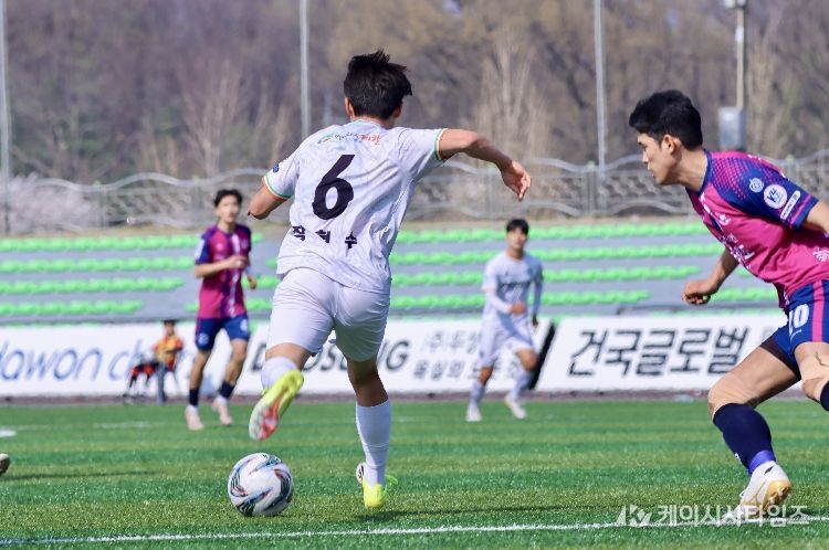 제천시민축구단은 지난 2025 시즌 준우승팀인 남양주시민축구단을 상대로 한 치의 물러섬 없는 접전을 펼쳤다. 전반전은 양 팀이 팽팽한 탐색전을 벌이며 마무리됐다.