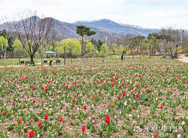 (케이시사타임즈) 천안의 대표 명소인 삼거리공원 너른뜰 튤립정원에 10만 송이의 튤립이 꽃망울을 터트리며 시민들에게 봄의 설렘을 전하고 있다.