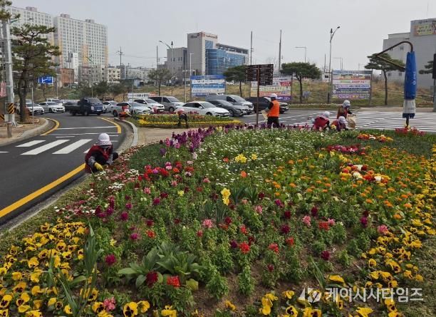 시는 주요 교통섬 6개소와 대형 화분 등에 봄꽃을 배치해 운전자와 보행자 모두가 봄의 정취를 느낄 수 있도록 했다.