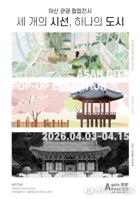 ‘세 개의 시선, 하나의 도시’라는 주제로 열리는 이번 팝업스토어는 아산 관광 12선을 세 명의 일러스트 작가(우주, 민데, 차일디시블루)의 독창적인 시각으로 재해석한 작품들을 선보이며, 기존의 관광 이미지에서 벗어나 젊고 감각적인 도시 이미지로서의 아산을 대중에게 전달할 예정이다.