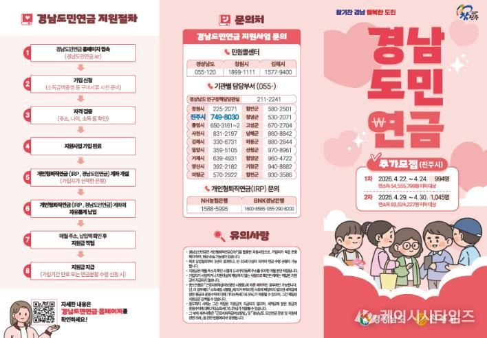 가입 신청은 경남도민연금 누리집(경남도민연금.kr)에서 가능하다.