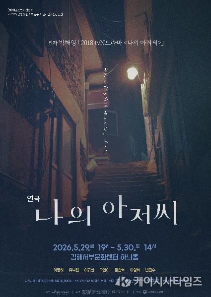 (케이시사타임즈) (재)김해문화관광재단 김해서부문화센터는 ‘2026 공연예술 지역유통 지원사업’ 선정작인 연극 '나의 아저씨'를 오는 5월 29일과 30일 양일간 하늬홀에서 선보인다.