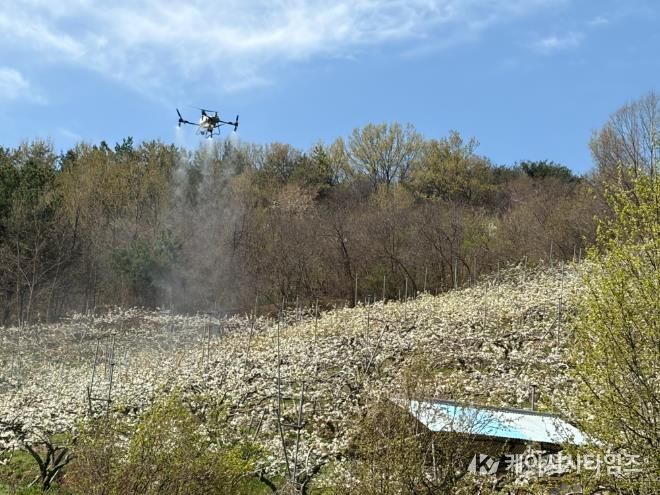 (케이시사타임즈) 산청군은 드론 활용 배 인공수분 실증시험을 실시했다고 10일 밝혔다.