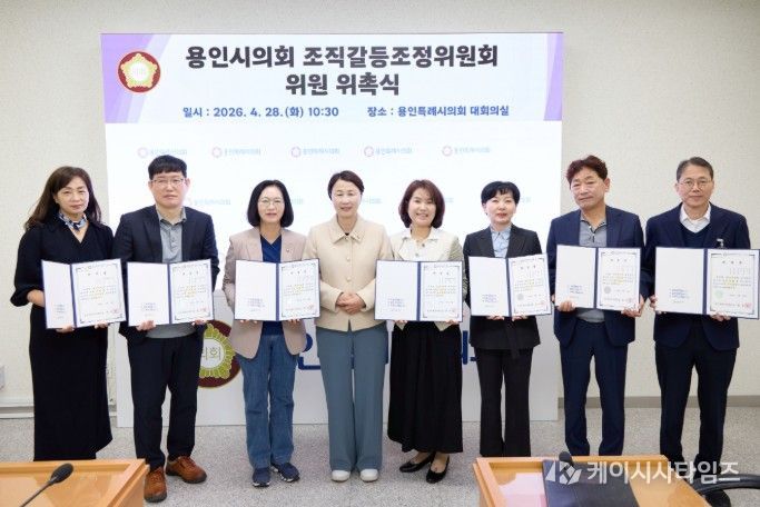 (케이시사타임즈) 용인특례시의회는 28일 대회의실에서 조직 내 갈등을 예방하고 합리적으로 조정하기 위한 조직갈등조정위원회 위원 위촉식을 개최했다.